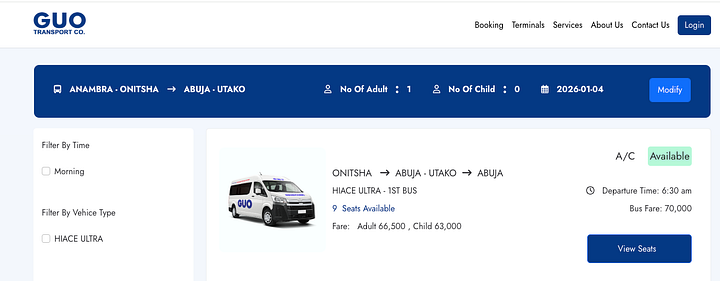 Booking your bus to your destination using GUO online booking is straightforward to navigate. The GUO online booking allows passengers book their bus from any part of the world with a few steps.