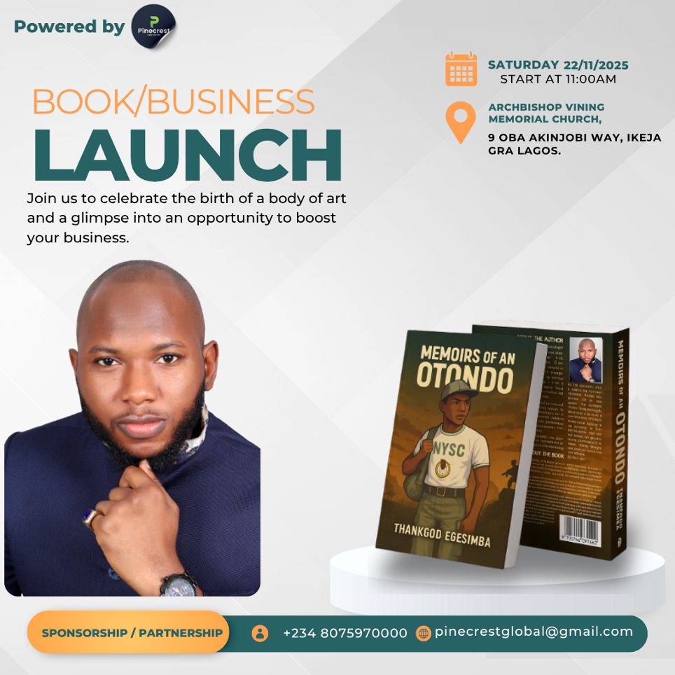 The novel debuts at 11 am on November 22nd at the Seminar Hall of Archbishop Vining Memorial Church, Ikeja GRA, Lagos. The author is inviting brands, businesses, students, NYSC members/affiliates, the literary community, and anybody who is interested in an opportunity to partake in a positively enriching experience.