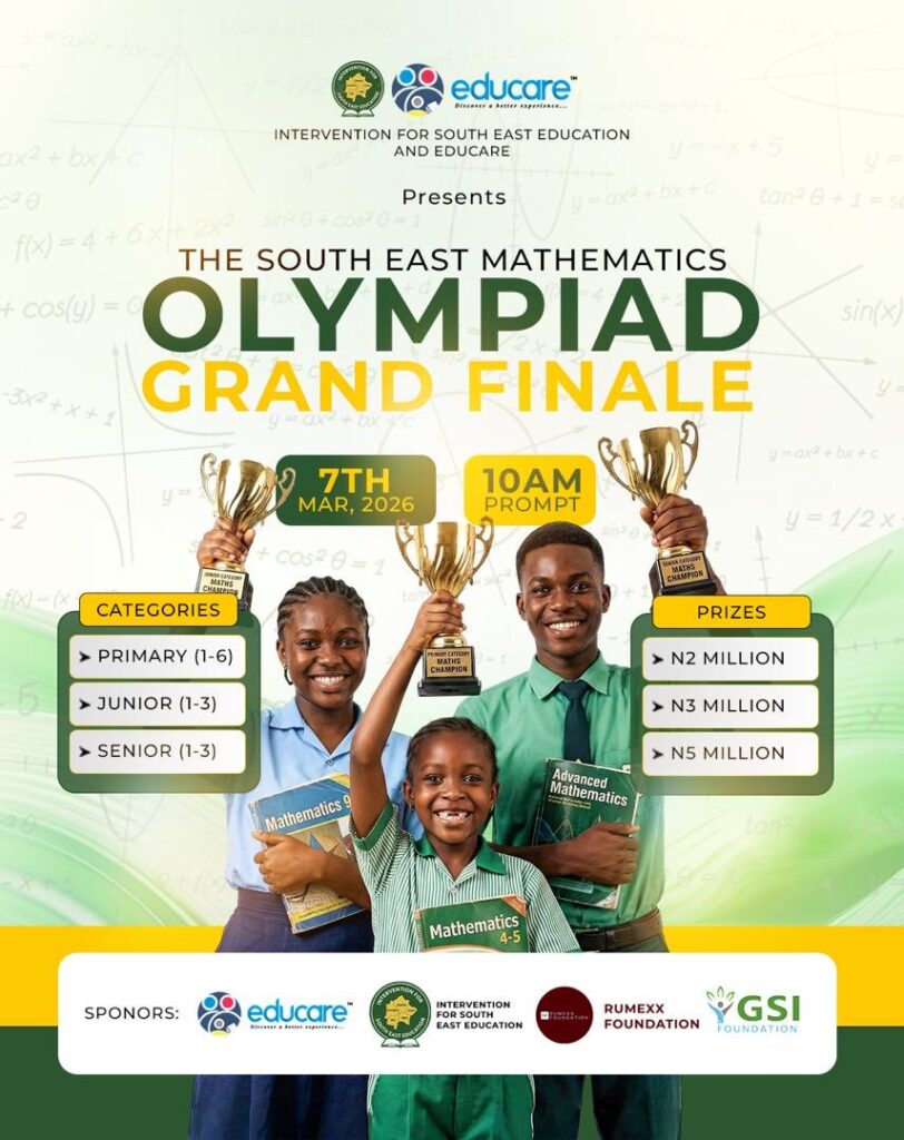 The Southeast Maths Olympiad Final will start on 10:am Prompt at a designated centre in Enugu. The exams follow the established Primary, Junior, and Senior Categories, with contestants in each category poised to win different prizes.